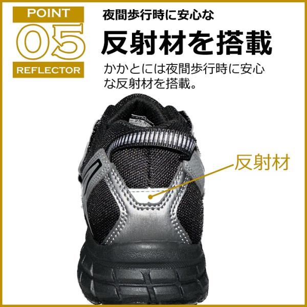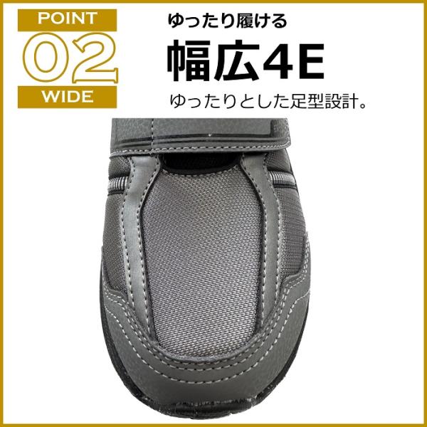ベーシックな面ファスナータイプです。普段履きや街履きなど、様々なシーンに対応する汎用性の高いデザイン設計。軽くてゆったり履ける幅広4E設計です。