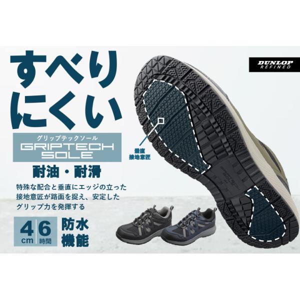 防水シューズ メンズ スニーカー ウォーキングシューズ ダンロップ リファインド DU6013 トレッキングシューズ 軽量 幅広 4e 防水 耐油 耐滑 スリッポン 靴