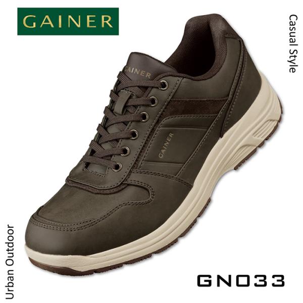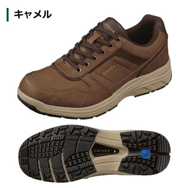 ウォーキングシューズ メンズ スニーカー 幅広 甲高 防水シューズ ファスナー付き 幅広 4e ゲイナー GN033 防水 ワイド 膝に優しい クッション アウトドア 紐 靴