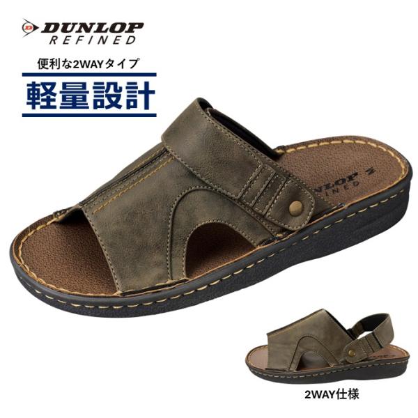 サンダル メンズ 大きいサイズ対応 ヘップサンダル コンフォートサンダル ダンロップ リファインド メンズ DCS606 軽量 二本ベルト 大きく開くマジックテープ