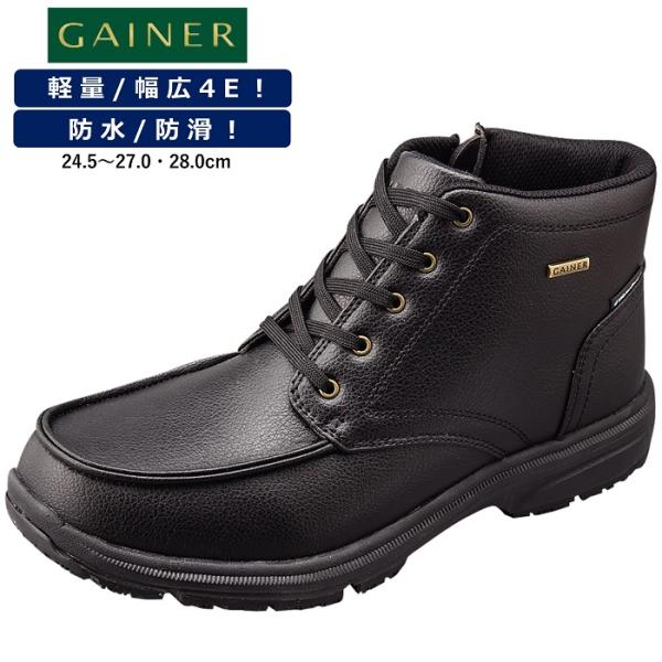 ショートブーツ メンズ カジュアルシューズ 防水 スニーカー 雨 雪 滑りにくい 靴 ウォーキング ミッドカット 幅広 ファスナー付き ゲイナー GN0145 ビジネス