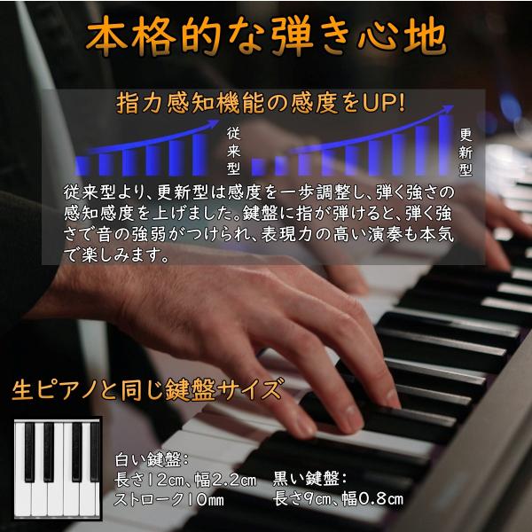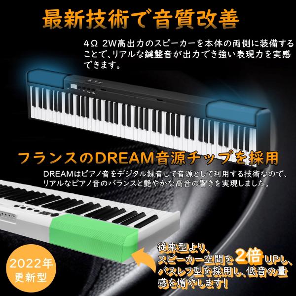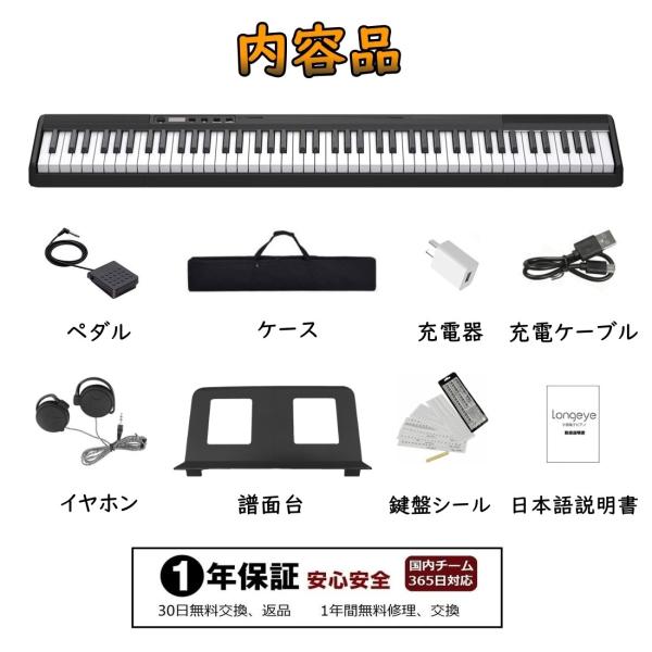 電子ピアノ 【2022最新版ー譜面台本体に付け】Longeye 88鍵盤 ピアノ 持ち運び 超小型 10mmストローク 練習にピッタリ ケース付き MIDI対応 一年保証 (黒)