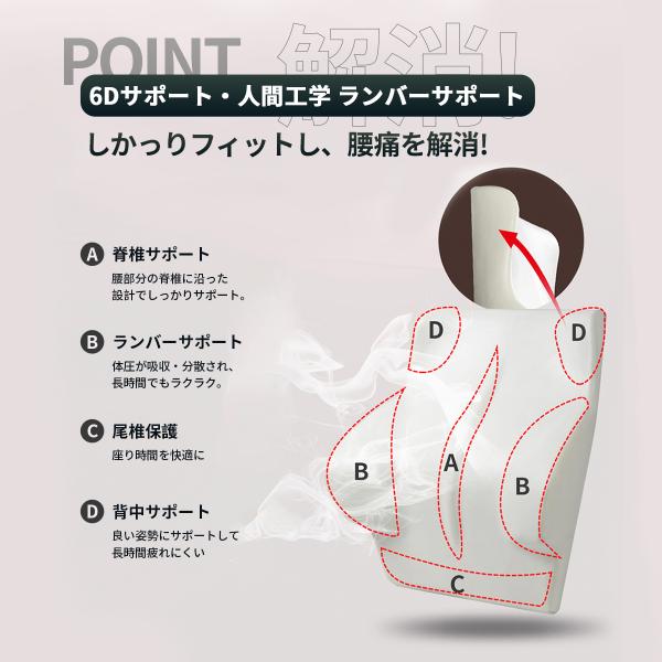 ■【負担を減らし、正しい姿勢に支え】人間工学に基づき設計されたランバーサポートは、6D抱きしめるフィットし、頸椎と背中を支え、やさしく体を包み込み、腰に負担を減らすことができます。