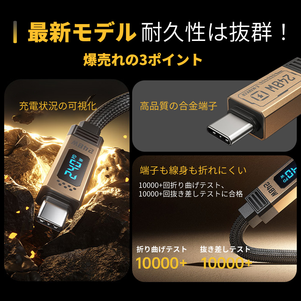 【速さの革命】240W+40Gbps+8K60HZ対応 ナイロン製 ケーブル