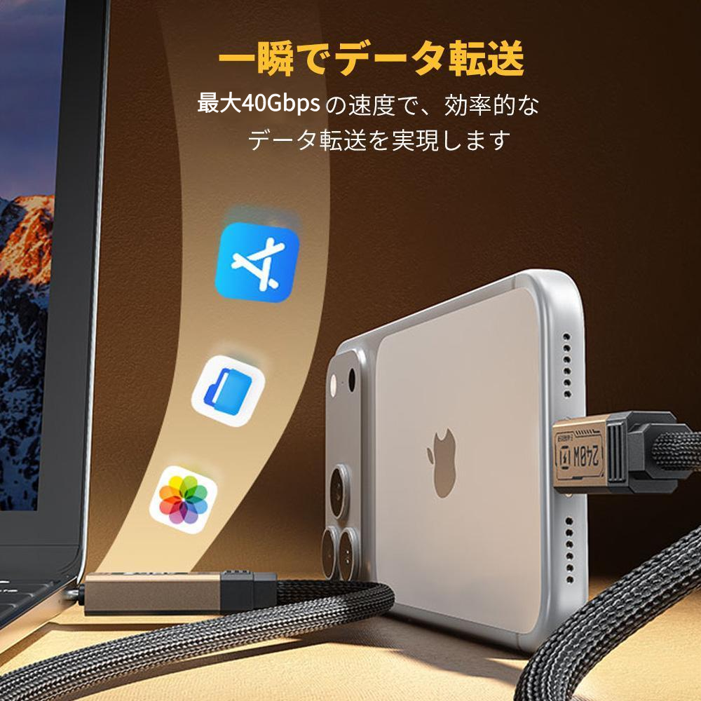 2in1 ケーブル 240W 高速データ転送 40Gbps タイプc ディスプレイ 8K60HZ ナイロン製 Type-C 長め 1.2m スマホ タブレット パソコン ケーブル 低温 ケーブル