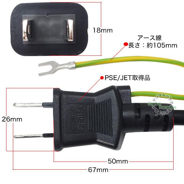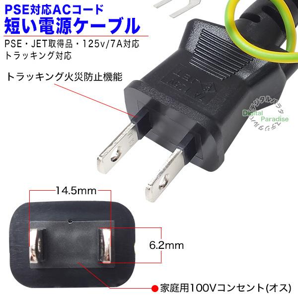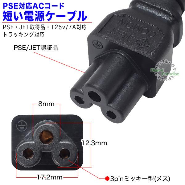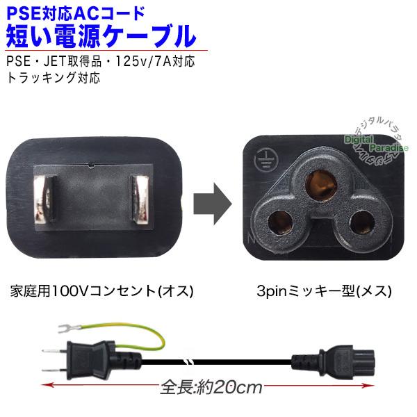 ミッキータイプ電源コード20cm 一般コンセント→3pinミッキー型 20cm 短い 電源ケーブル パソコンACやモニター PSE取得品 125v 7A Tracking対応 COMON AC-D-02F