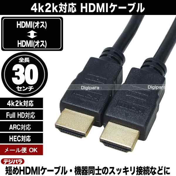 HDMIケーブル30cm 4k2k対応 HDMI(オス)⇔HDMI(オス) 長さ:約30cm ゲーム機 録画機 パソコン等 Switch 短いケーブル フルHD 60fps対応 端子:金メッキ 2HDMI-03