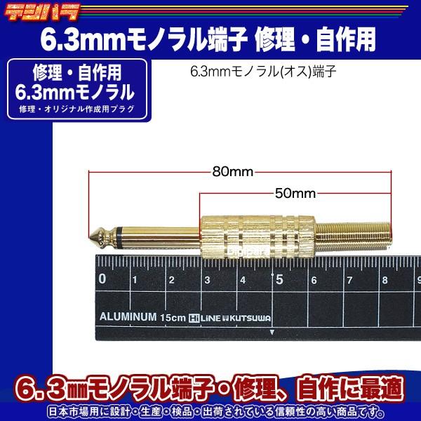 6.3mmモノラルプラグ(金色) 6.3mmモノラル(オス)プラグ 金メッキ オリジナルケーブル 修理 交換 自作配線 COMON 63M