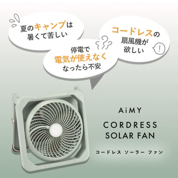コードレス扇風機 ソーラー ファン コードレス 扇風機 充電式 LEDライト 太陽光 充電 キャンプ アウトドア 災害時 ソーラー充電器 スマホ充電 AIM-SF01