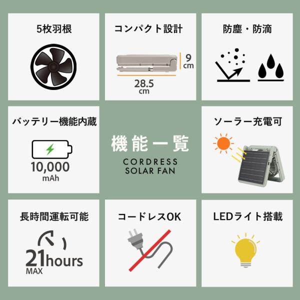 コードレス扇風機、ソーラーパネル、ソーラーファン、充電式扇風機、電源不要、ポータブル扇風機、USB充電、自動充電、ソーラー充電、省エネ扇風機、アウトドア扇風機、キャンプ扇風機、車中泊、ガーデニング、ベランダ扇風機、防災グッズ、停電対策、屋外用扇風機、釣りグッズ、BBQグッズ、熱中症対策、節電扇風機、エコ家電、静音扇風機、風量調整、首振り扇風機、軽量ポータブル、携帯扇風機、屋外充電、コンセント不要