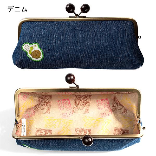 クッキー総柄タイプとデニムワッペン刺繍(かたつむり)タイプのがま口です。