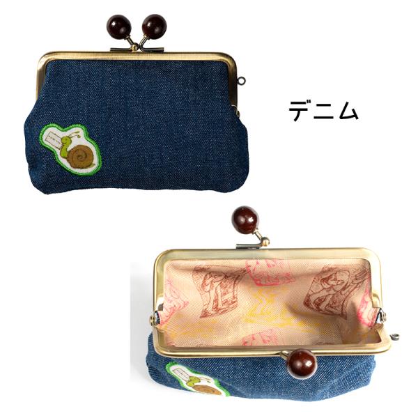 クッキー総柄タイプとデニムワッペン刺繍(かたつむり)タイプのがま口です。