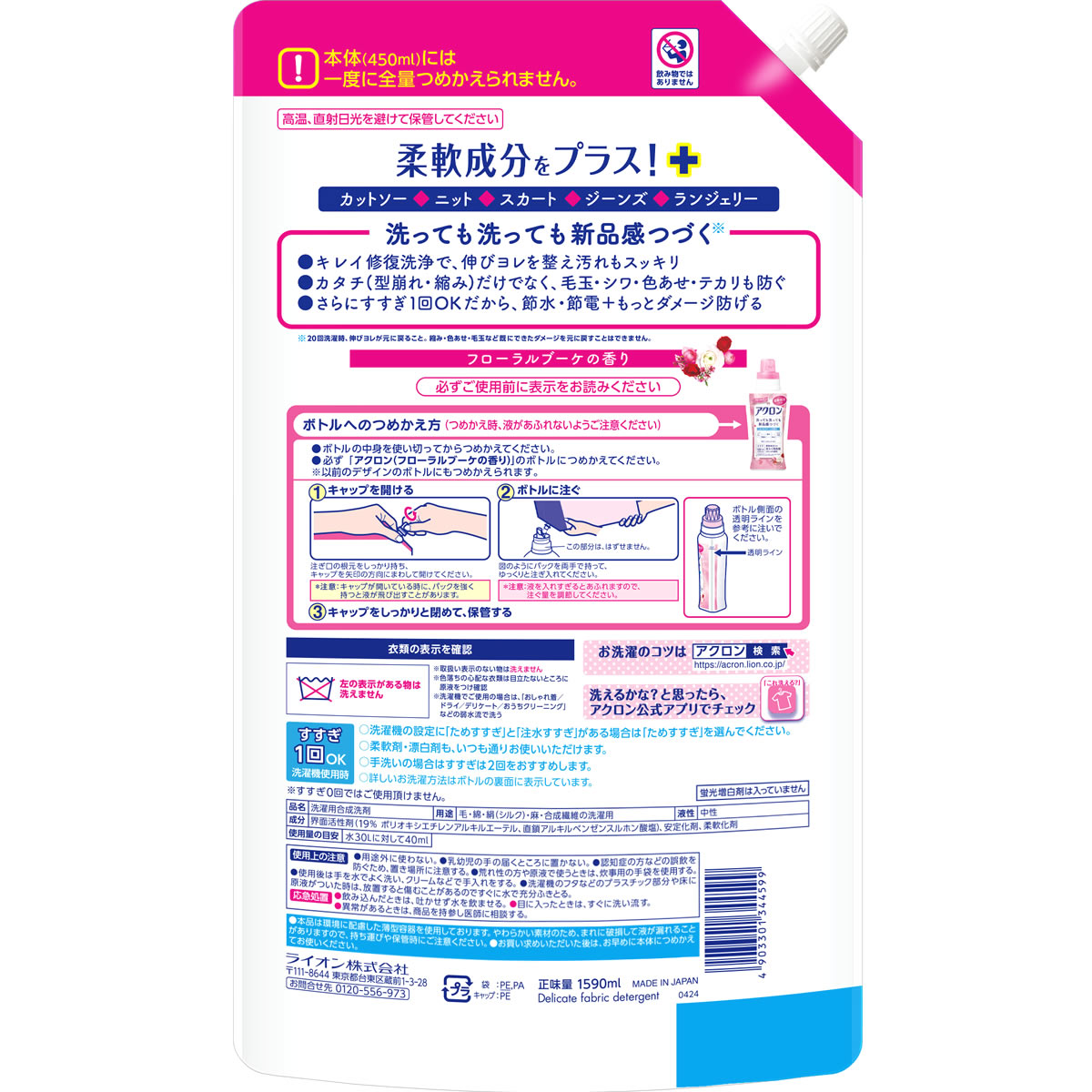 《ケース》 ライオン アクロン フローラルブーケの香り ウルトラジャンボ つめかえ用 (1590mL)×6個 洗濯用合成洗剤 おしゃれ着用洗濯洗剤 送料無料