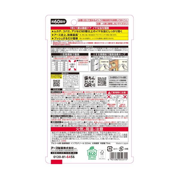 《セット販売》 アース製薬 ゼロノナイト イヤな虫用 1プッシュ式スプレー 60回分 (75mL) ×3個セットカメムシ 害虫 駆除 殺虫剤 スプレー 対策 退治