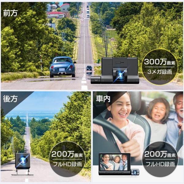 ドライブレコーダー 3カメラ同時録画 1296P SONYIMX327センサー 超広角 4.0インチ HDR画像補正 駐車監視 Gセンサー ループ録画 前後/ドライブレコーダー