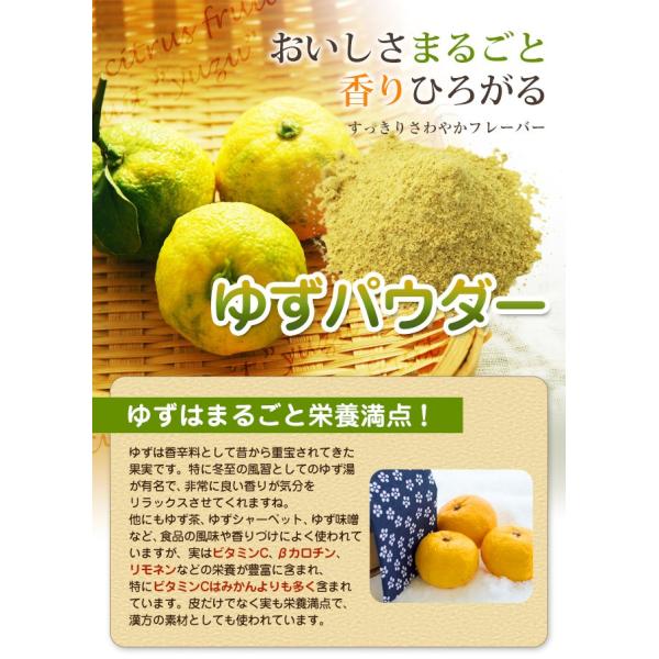 高知県産のゆずを100%使用した安心・安全なゆずパウダー。