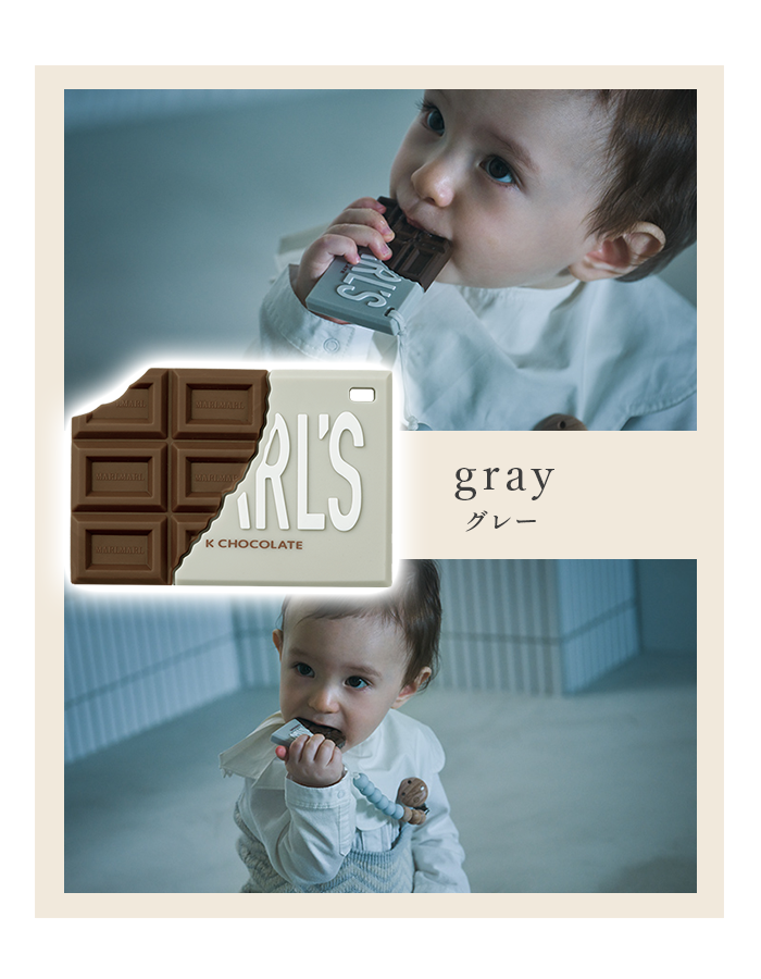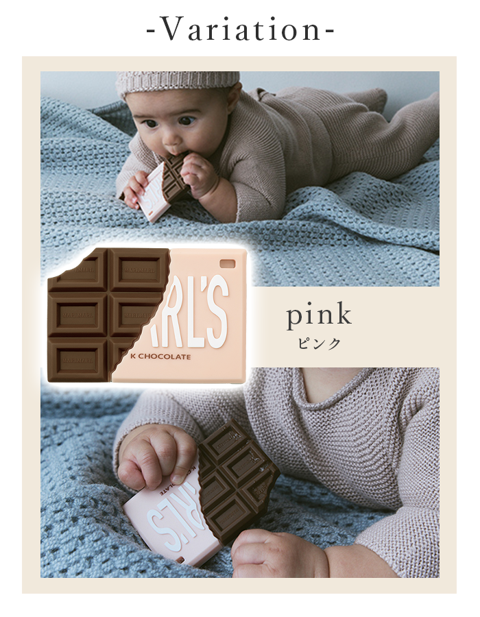 歯が生えはじめた赤ちゃんへ。新生児〜2歳頃まで使えるおもちゃです。一生懸命にチョコレートをかじっているような姿がペアレンツの笑顔を誘います。