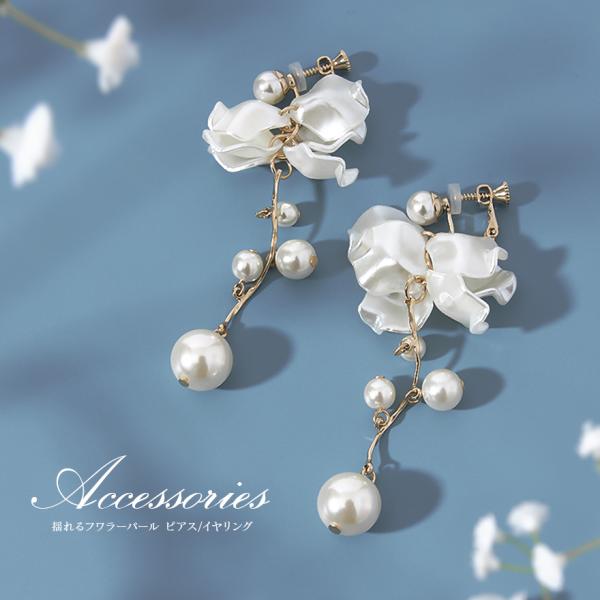 パール ピアス イヤリング 結婚式 アクセサリー 揺れる ぶら下がり レディース パーティー/フラワー/セット可能/お呼ばれ/ ゴールド