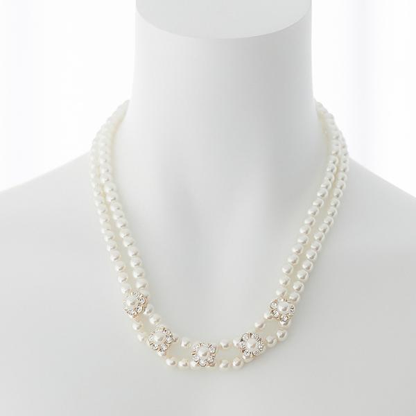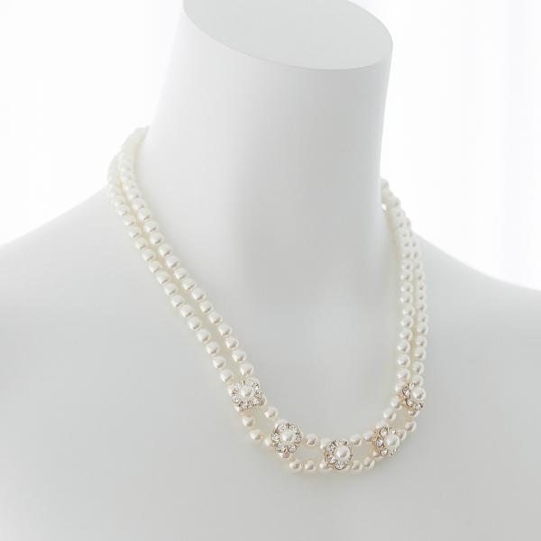 ネックレス 結婚式 パール アクセサリー パーティー ゴージャス ショート レディース 2連 2WAY ウェディング シンプル ボリューム パールネックレス
