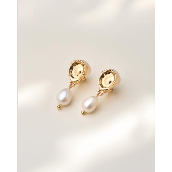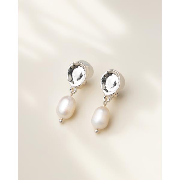 淡水パールとハンマードメタルが織りなす上品なイヤリング。