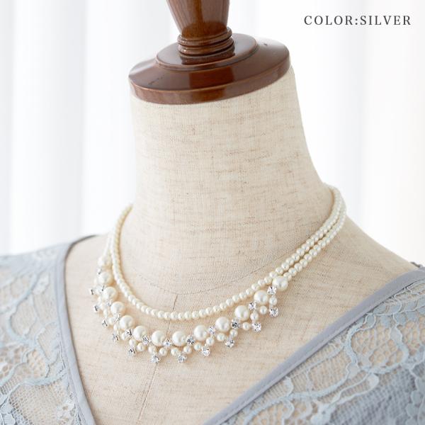 ネックレス 結婚式 パール アクセサリー パーティー ゴージャス ショート レディース 2連 2WAY ウェディング シンプル ボリューム パールネックレス