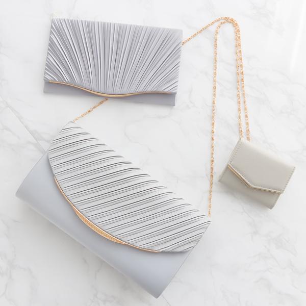 プリーツサテンが華やかで3WAY仕様のクラッチバッグ