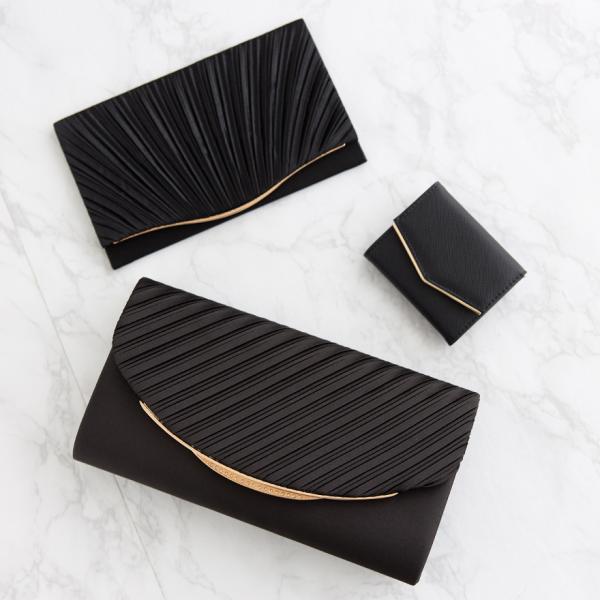 プリーツを引き立てるサテンの構造で華やかなクラッチバック