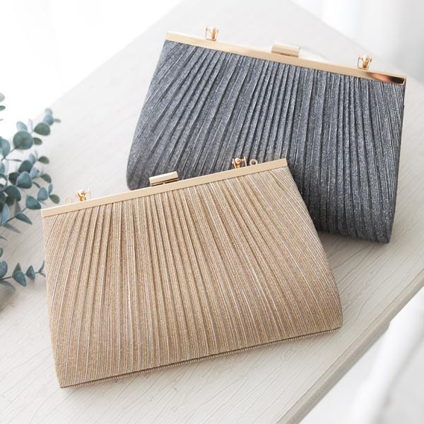 プリーツを引き立てるラメチュールの二層構造で華やかなクラッチバック