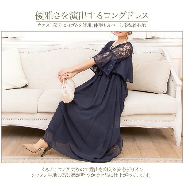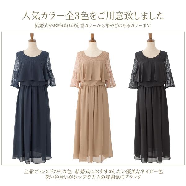 パーティードレス 結婚式/ワンピース/ドレス/春夏/20代/30代/お呼ばれロングドレス/ラッフルフリル/ロング/シフォン/レースネイビー/モカ/ブラック/Mサイズ/Lサ