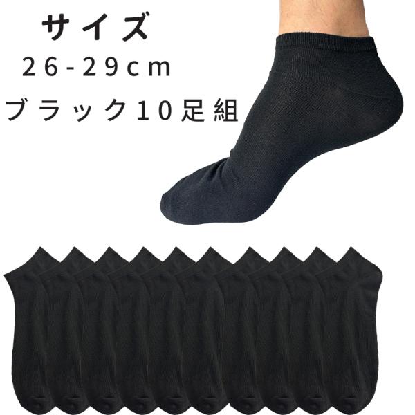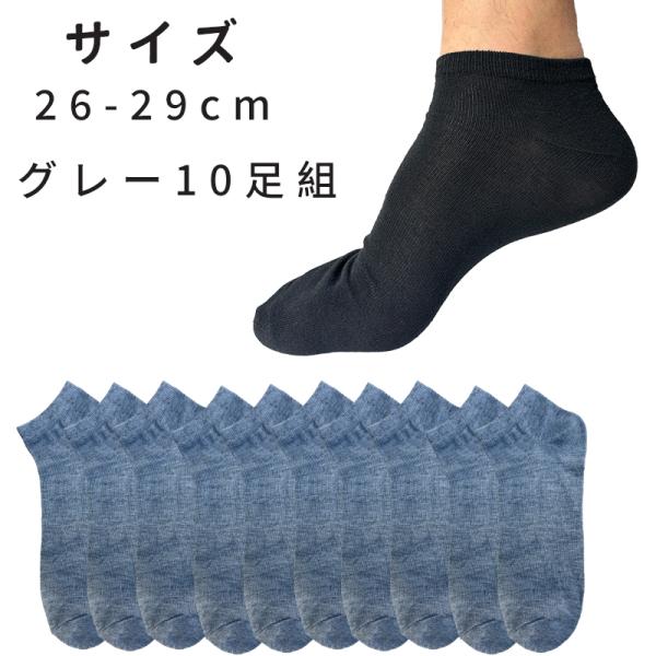 【10足セット】メンズ ショートソックス 靴下 26-29cm くるぶし丈 吸汗速乾 通気性 黒 グレー 夏 薄手 無地