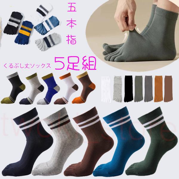 5本指ソックス 靴下メンズ 五本指 クルーソックス 無地おしゃれ 5足組 スポーツ 抗菌防臭 コットン 黒 グレー 白