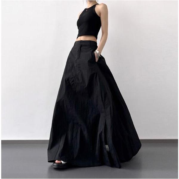 スカート レディース ロングスカート マキシスカート ベイカースカート ロング ベイカー 大きいサイズ 体型カバー Aライン フレア フレアスカート
