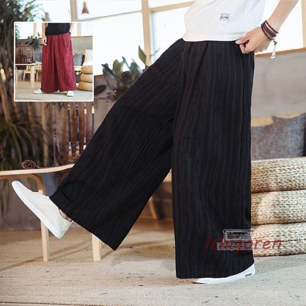 ワイドパンツ メンズ 麻パンツ サルエル リネンパンツ バギーパンツ 涼しい 黒 レッド 春 夏 秋 綿麻 新作 父の日 プレゼント
