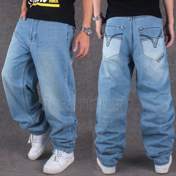 バギーパンツ メンズ ジーンズ デニム ワイド ウォッシュ加工 ゆったり ロングパンツ 大きいサイズ B系 ヒップホップ ストリート系 ファッション