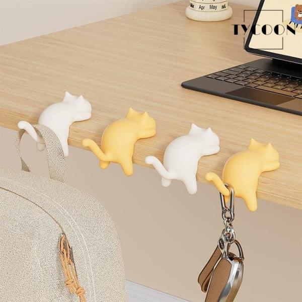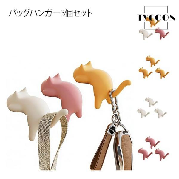 バッグ掛け 猫 3個セット テーブル フック バッグハンガー デスク ランドセルフック 穴あけ不要 粘着 サイドテーブル 耐荷重5kg 鍵かけ カバン