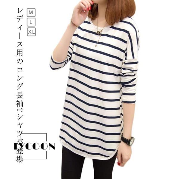 レディース ロンT 長袖Tシャツ 長袖 ロングT カットソー ゆったり ボーダー柄 ボーダー柄 シンプル 春 秋 Tシャツ カジュアル 大きいサイズ