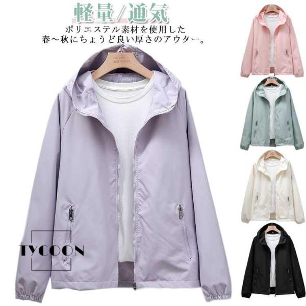 マウンテンパーカー レディース 春 コート ブルゾン ウィンドブレーカー フード付き 秋 トレンチコート アウター 無地 軽量 通気 防風 スプリング