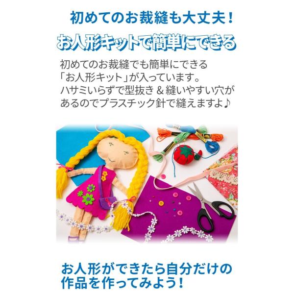 すぐに作りたい!というお子様のお気持ちに添えるよう、布も一緒に入っていますので、開けた瞬間から創作活動を始めることができます。