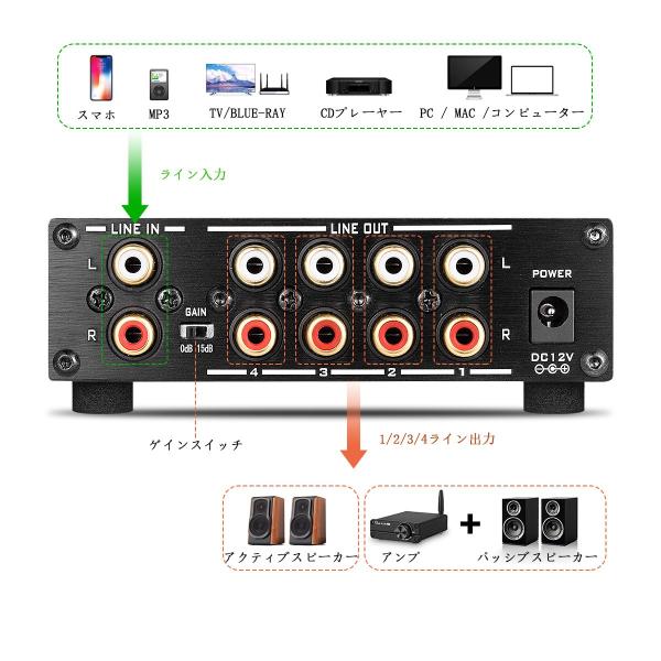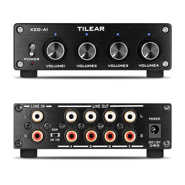 アンプ用4-way ロスレス アナログ オーディオスイッチャー ボックス RCAスプリッター VOL コントロール