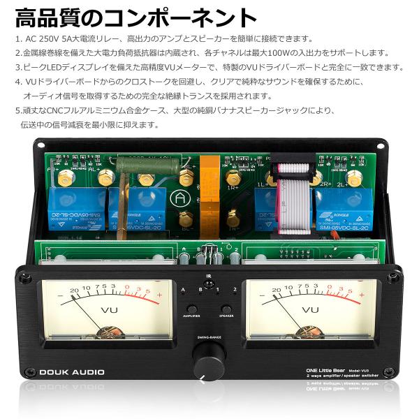Douk Audio VU3PRO ビジュアルメーター オーディオアンプ/スピーカーセレクター 2-IN-2-OUT スイッチボックス
