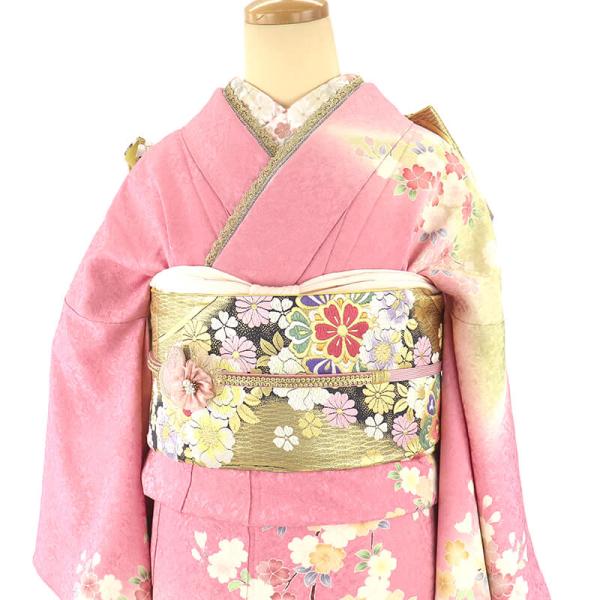 20%OFF セール中古 振袖 正絹 美品 成人式 結婚式 購入 振袖単品 ピンク 桜 身丈174cm 裄丈66cm Mサイズ 四季花柄振袖