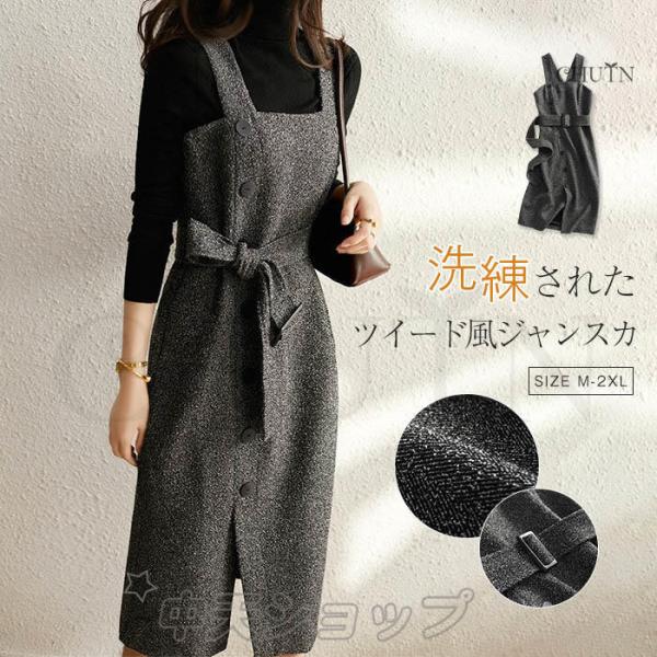 ジャンパースカート秋冬 サロペット ジャンスカ キャミワンピースラシャワンピースツイード風 ジャンパースカート 大人通勤ラシャ トサロペットスカート~XL