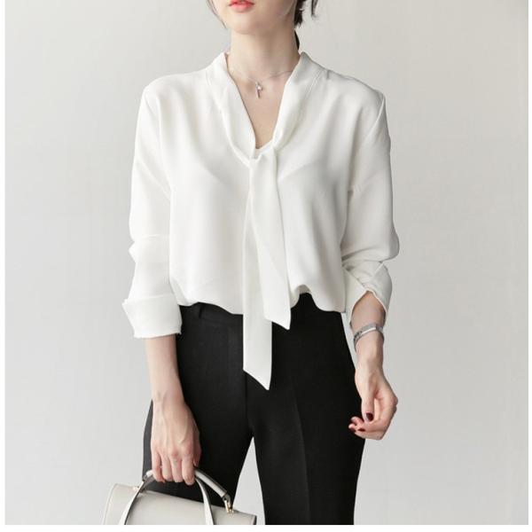 夏秋ブラウスレディースブラウス白 シフォン ブラウスフォーマル 結婚式シフォンシャツ レディース オフィス 通勤 黒ブラウスリボン ブラウスフォーマル白〜2XL