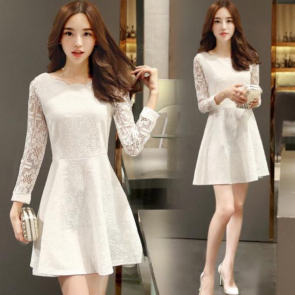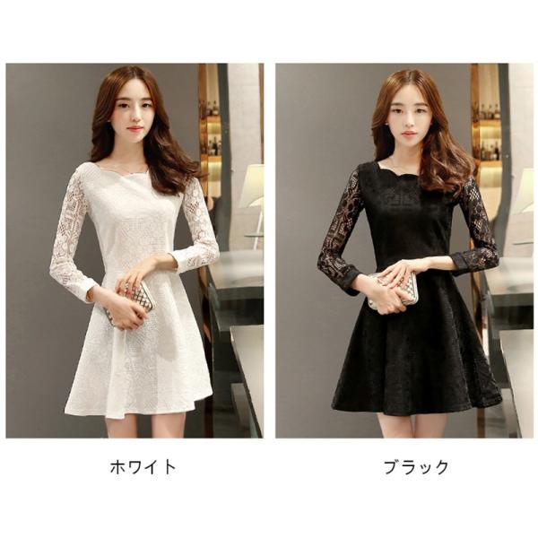 ワンピースパーティードレスレースワンピース白/黒 レディース長袖 Aライン ミニ丈ドレス お呼ばれワンピース 大きいサイズドレス 二次会結婚式お出かけ部分即納