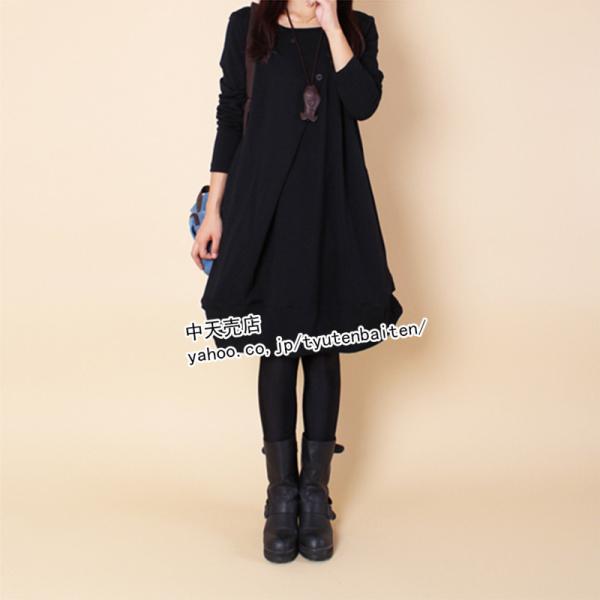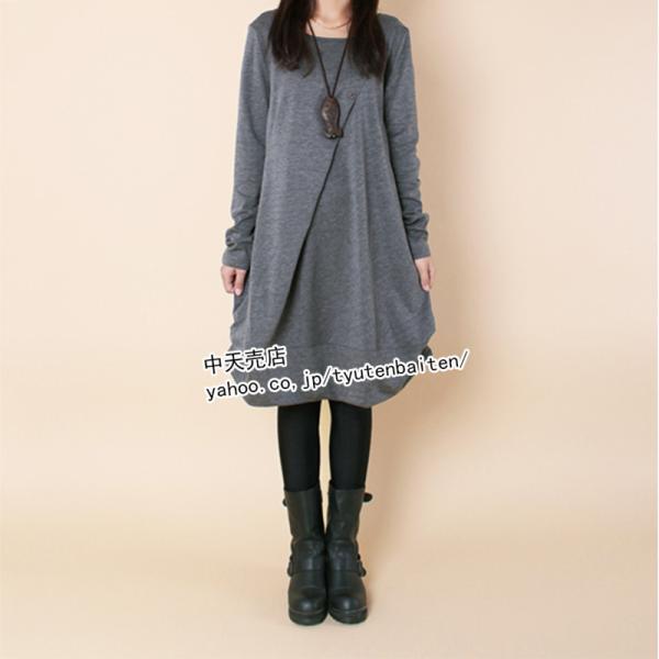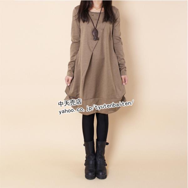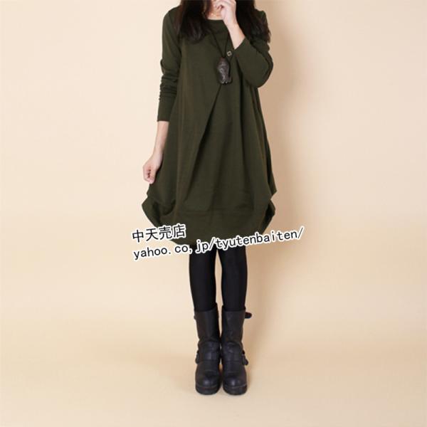 ゆるワンピース 長袖 秋冬 ワンピース レディース 膝丈ワンピース ゆったり 着痩せ カジュアルワンピース ポケット付き 大きいサイズ 韓国風 オシャレ 4色