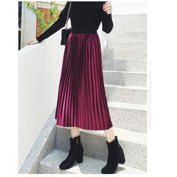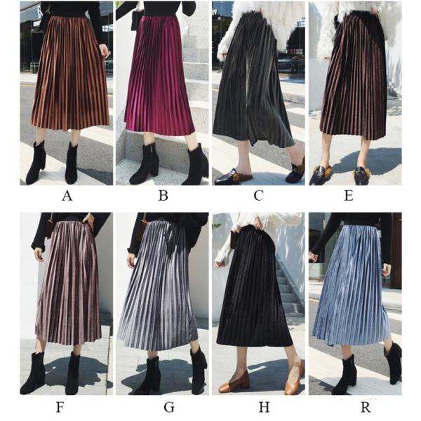 即納ベルベットスカートプリーツスカート春服ロングスカート二次会 卒業式 成人式入学式 着痩せウェストゴムシンプル オシャレ お呼ばれベルベットスカート秋冬