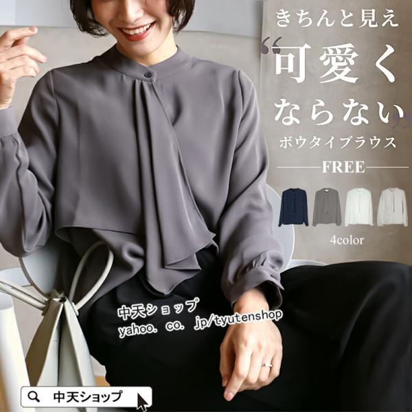 ブラウス レディース 長袖ブラウス 春夏秋 オフィスブラウス シフォン オシャレブラウス 着痩せ トップス 韓国風 ゆったりシャツ 大人上品無地通勤OL40代50代