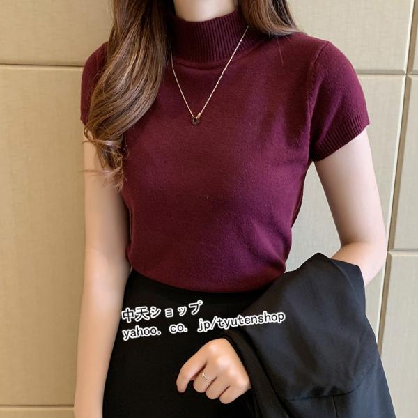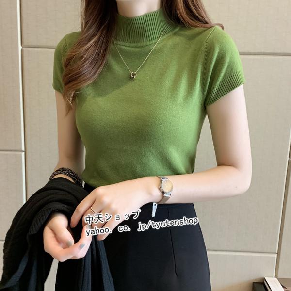 トップス レディース 半袖 春夏 ニットトップス カットソー 無地 着痩せ ハイネック タンクトップ インナーコーデ サマーtシャツ カジュアル オシャレ 通勤 7色