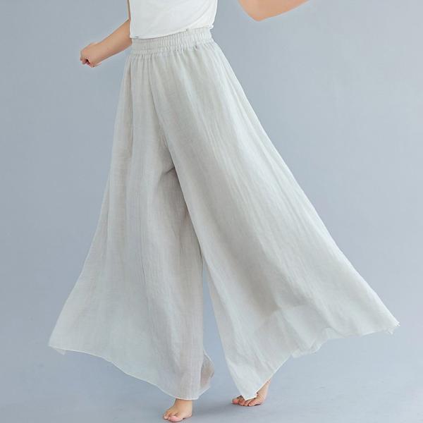 ガウチョパンツワイドパンツ レディース ガウチョパンツ リネン 無地 ロング丈 ウエストゴム ゆったり シンプル おしゃれ ボトムス 春 夏 秋パンツ 綿麻全12色
