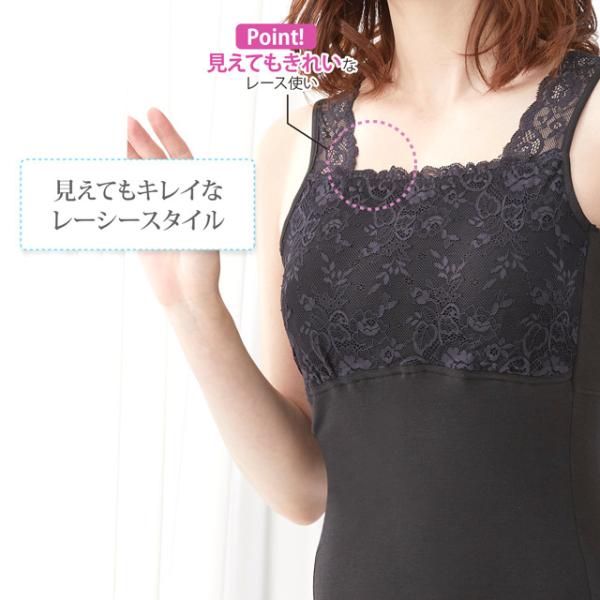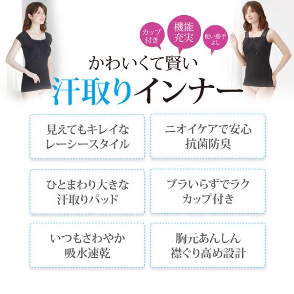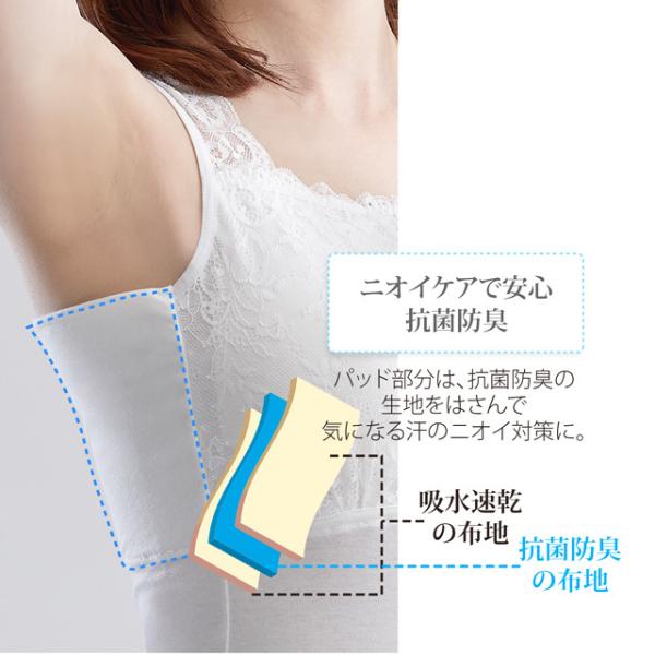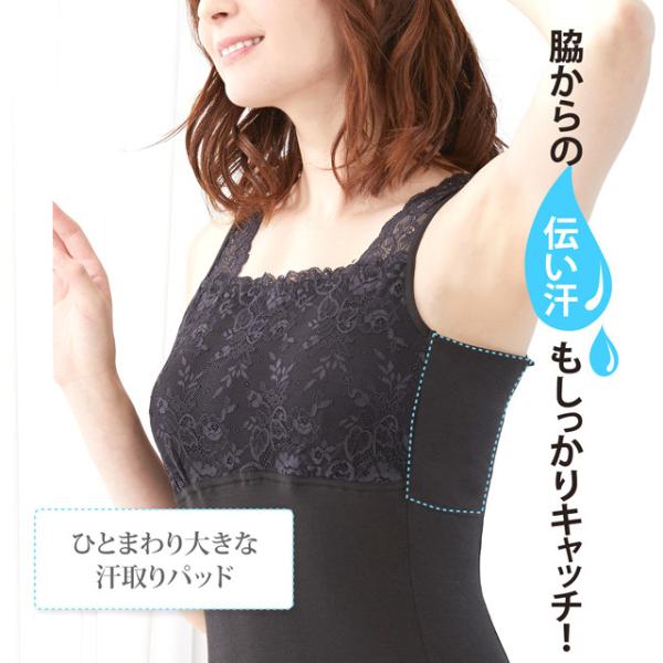 カップ付き レース 汗取りインナー タンクトップ レディース 綿混 ブラトップ 汗取りパッド 袖なし スクエアネック 抗菌防臭 速乾 脇汗
